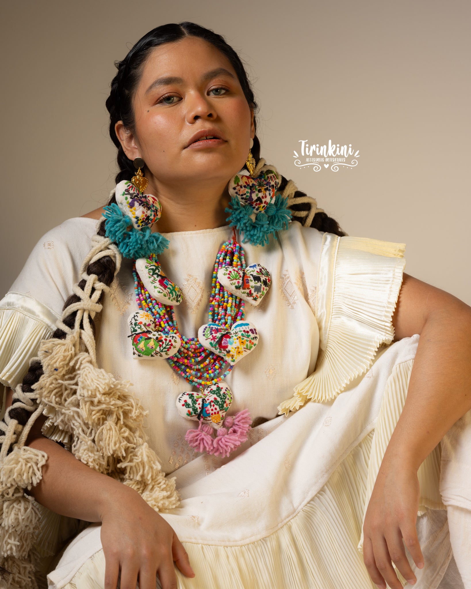 Al tratarse de una creación artesanal, cada pieza es irrepetible; por ello pueden presentarse ligeras variaciones en el bordado, la textura o la forma, características propias del trabajo hecho a mano que hacen única cada pieza. Asimismo, los colores pueden percibirse de manera distinta según la pantalla o el dispositivo desde el cual se visualice.