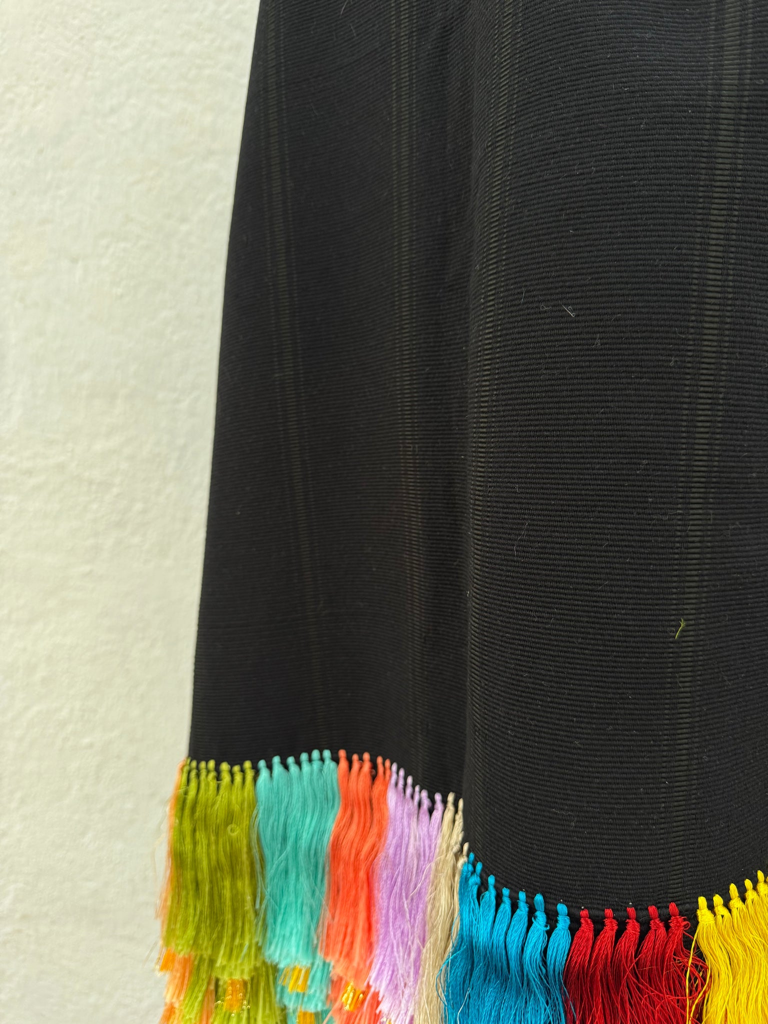 Rebozo elaborado en telar de cintura con algodón fino, rapacejo de mil flores en articela