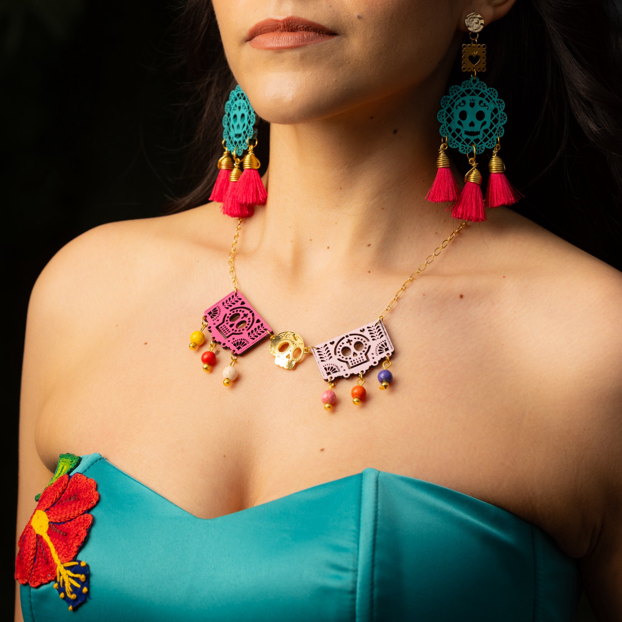 Entre risas, flores y papel picado, nace el collar “Viva la Vida”, una joya que celebra la alegría que perdura más allá del adiós.